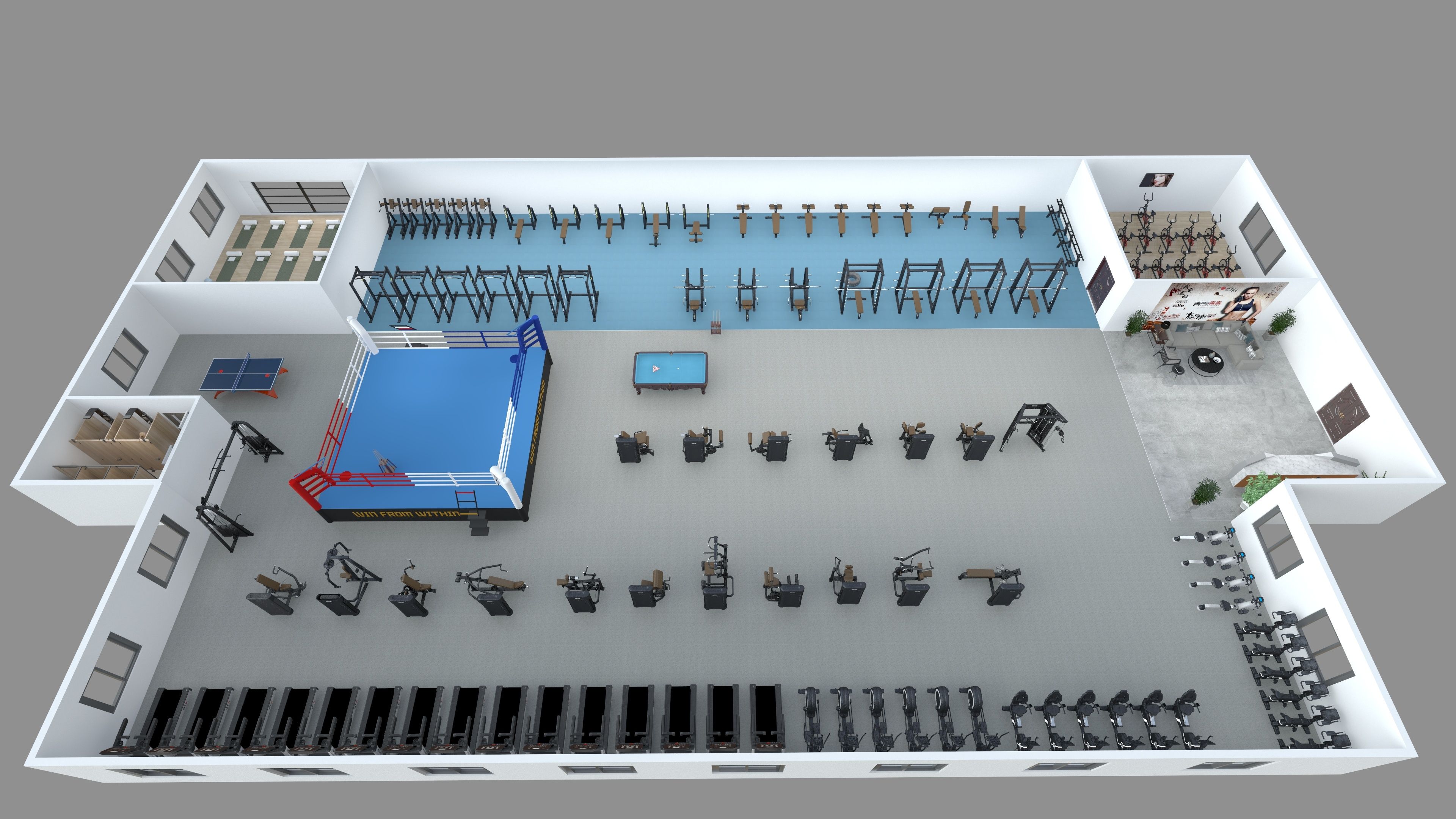 瑜伽室一间/乒乓球台一个/拳击台一个